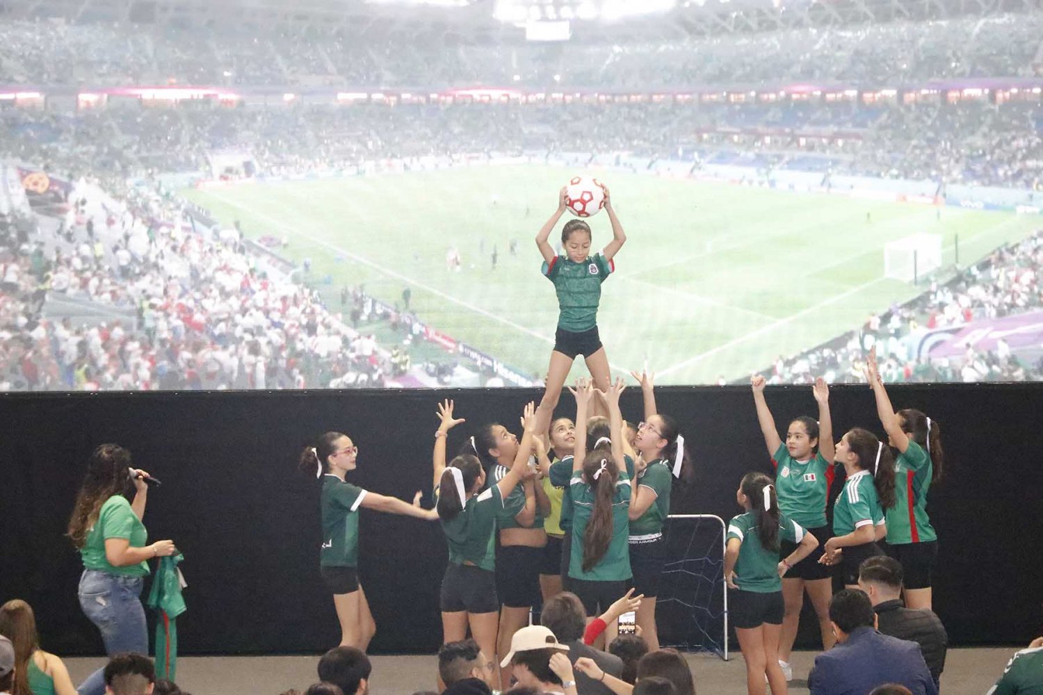 Para amenizar el medio tiempo, el Grupo de Animación y Baile de la UAG también hizo una presentación musical con tema mundialista.