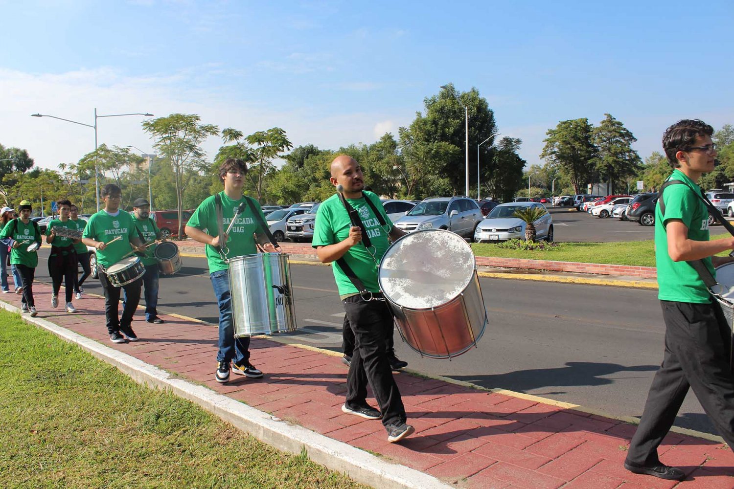 Previo al encuentro, la Batucada de la UAG recorrió Ciudad Universitaria para invitar a la comunidad de la Autónoma a disfrutar del encuentro y convivir con sus compañeros.