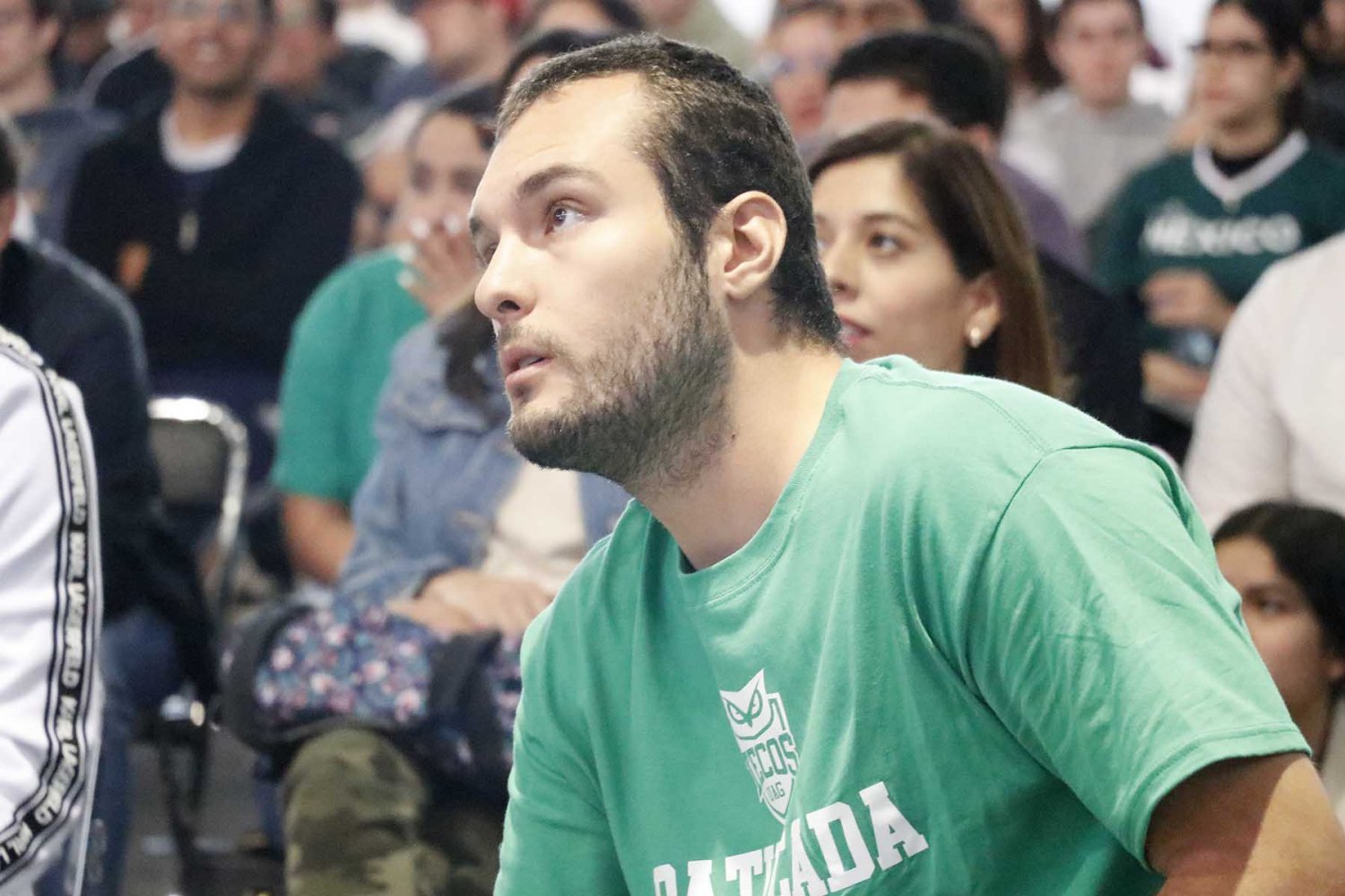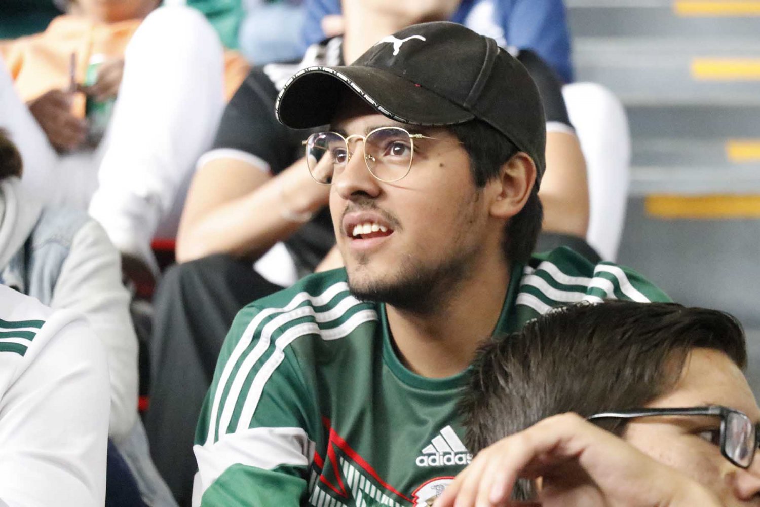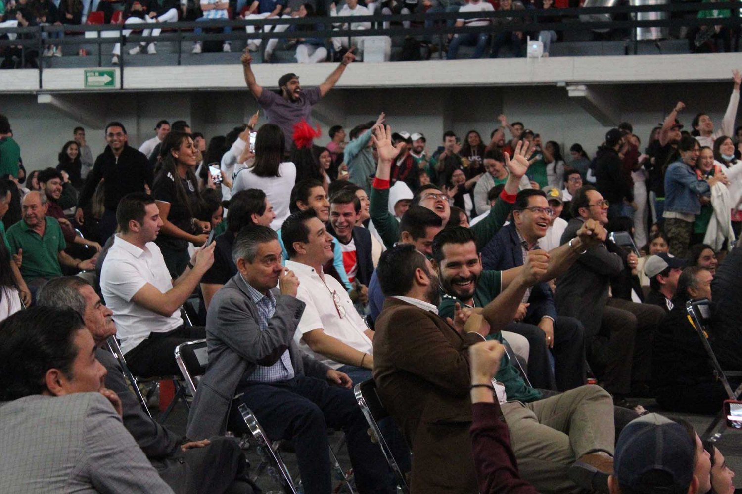 Estudiantes, académicos y colaboradores disfrutan del primer partido de la selección en pantalla gigante ubicada en el Gimnasio Universitario.