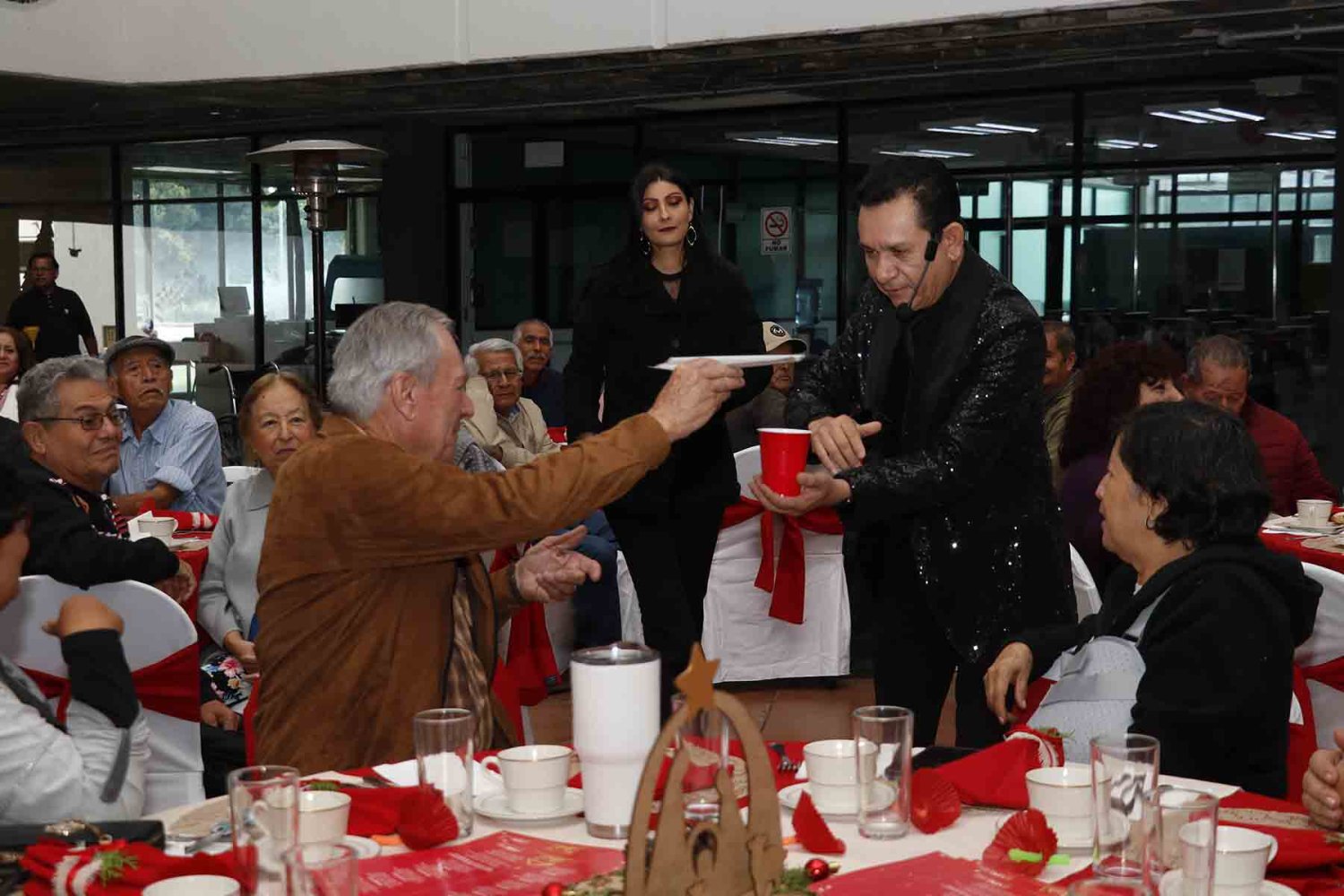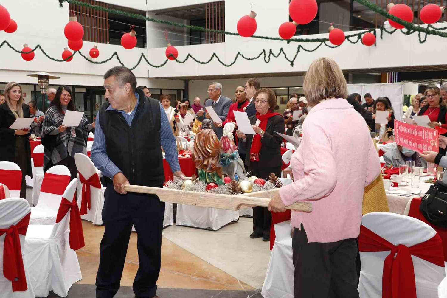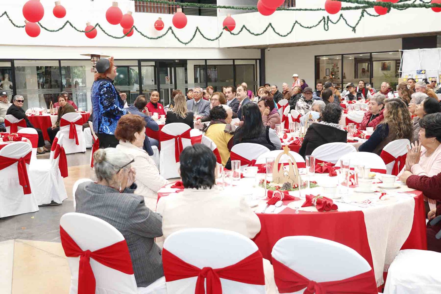 La tradicional posada de jubilados fue un singular evento con muchas sorpresas y actividades recreativas, desde pedir posada, villancicos, sorteos de rifa con más de 50 regalos, toma de fotografías navideñas en tres sets, show de magia, espectáculo de payaso, música en vivo, hasta servicio completo de desayuno.