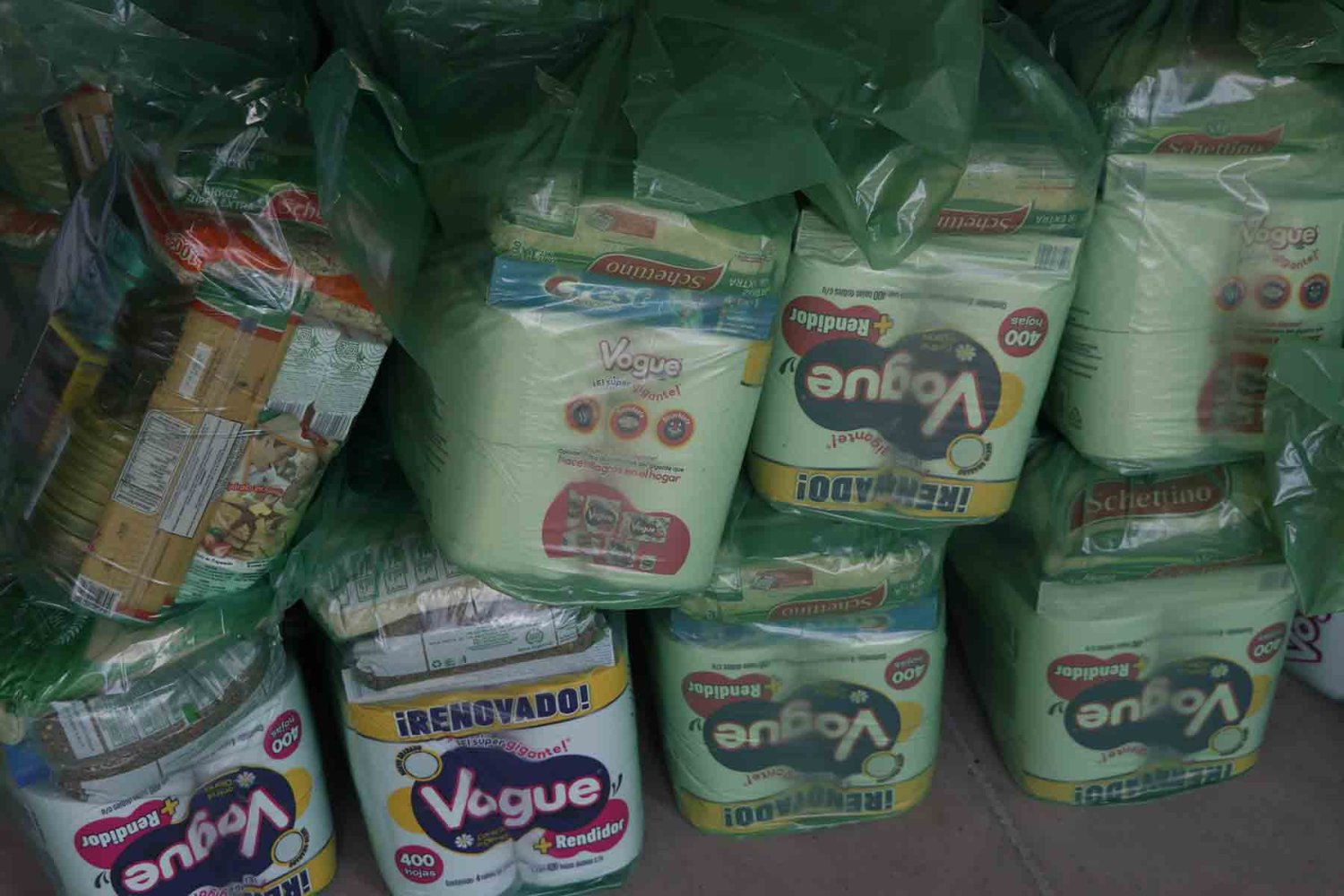 Este reparto fue al final del evento y consistió en despensas que incluían arroz, frijol, lentejas, mermelada, aceite, productos de limpieza y paquetes de cobijas, entre otros artículos de la canasta básica.