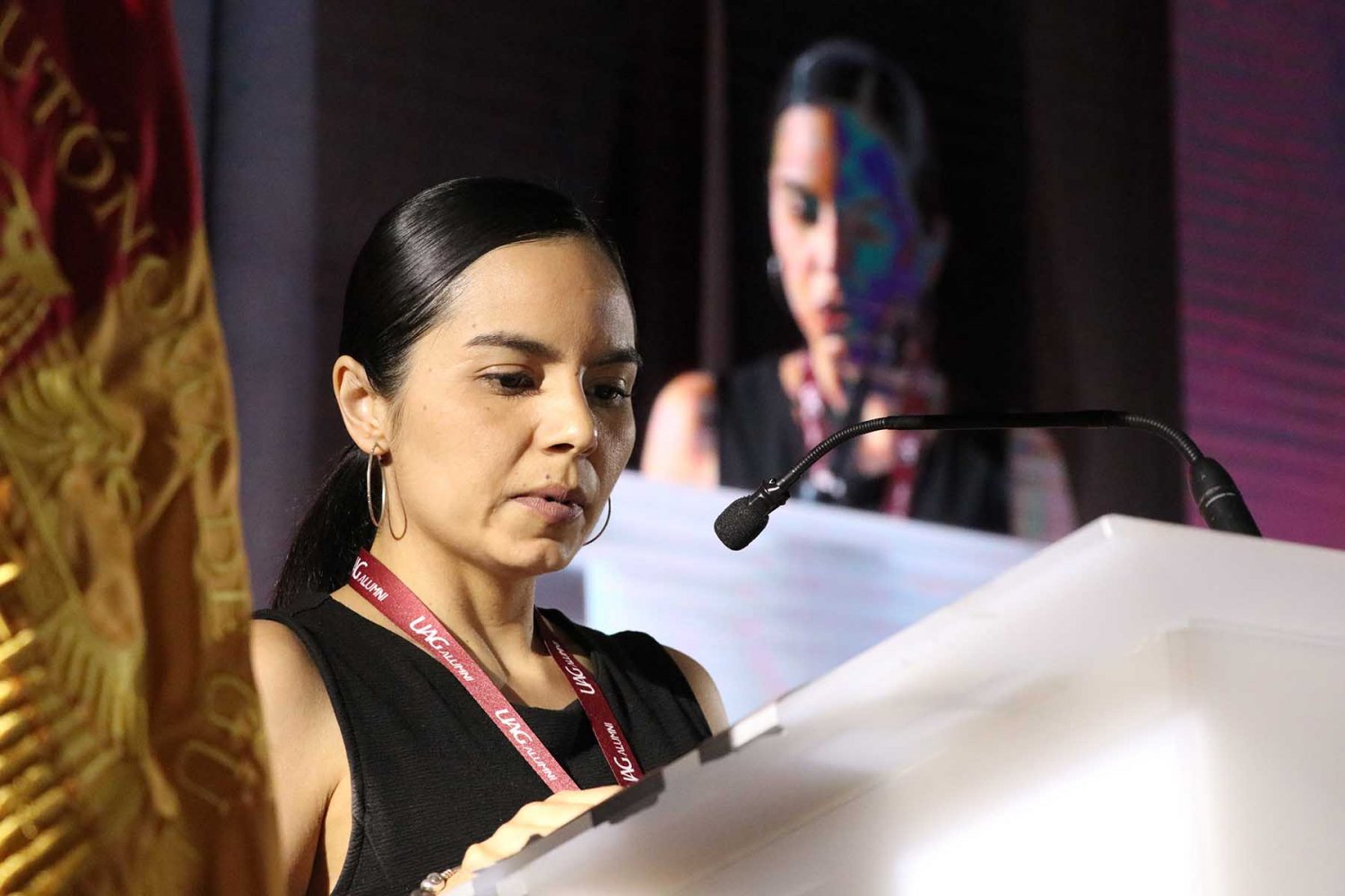 A nombre de los egresados de 25 años, la Lic. Mónica Romo Tenorio, de Comercio Internacional, dio un mensaje de agradecimiento a su Alma Mater por permitirles regresar y revivir los momentos que pasaron en la UAG.